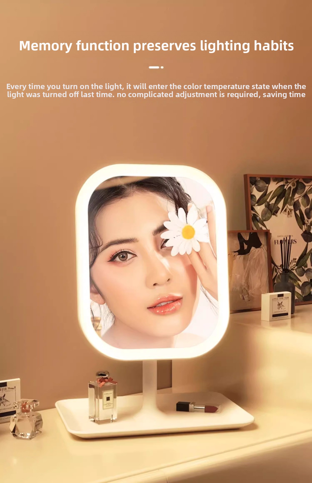 LED Illumination: Built-in LED lights provide optimal brightness for makeup application